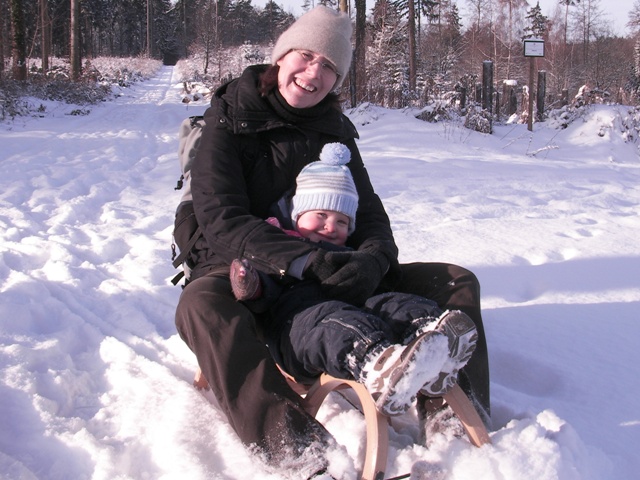 Alle stöhnen über den Schnee - wir können nicht genug davon kriegen. Schlittenfahren im Koblenzer Stadtwald mit Mami.